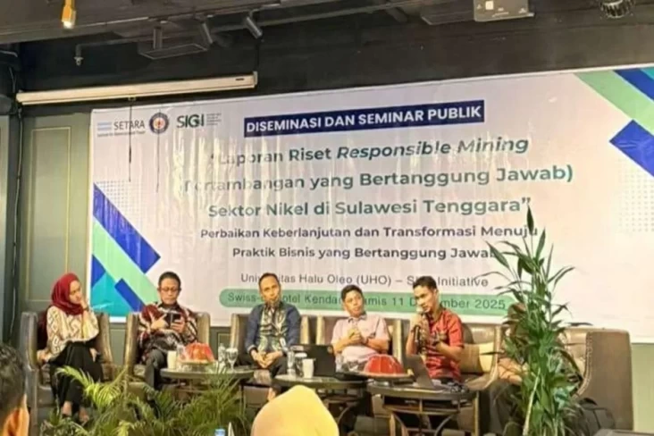 KENDARI – Universitas Halu Oleo (UHO) bekerja sama dengan SETARA Institute dan Sustainable & Inclusive Governance Initiative (SIGI Initiative) menggelar Diseminasi dan Seminar Publik Responsible Mining Sektor Nikel di Sulawesi Tenggara. Kegiatan ini memaparkan hasil riset komprehensif mengenai praktik pertambangan dan pengolahan nikel di dua wilayah utama, yaitu Kabupaten Konawe dan Konawe Utara, dengan fokus pada evaluasi penerapan prinsip pertambangan yang bertanggung jawab.